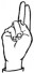 На ћирилици написано КЛАУДИЈЕ ЈОСИЈЕВИЋ састоји се из 17 слова [?]. Исписано ћириличном једноручном азбуком за глувонеме: